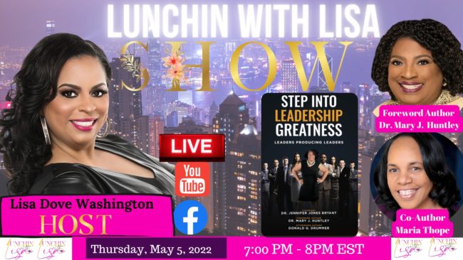 Step Into Leadership Greatness The Lunchin with Lisa Show is excited to share this amazing book project that will share some amazing insight on leadership! Visionary DrJennifer Jones Bryant has put together a dynamic group of co-authors for her new book that will be released in June 2022 – Step Into Leadership Greatness,…