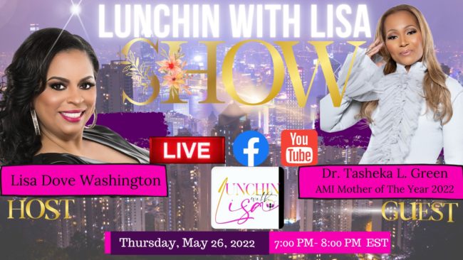 AMI Mother of The Year 2022 You know May is always a great month because we celebrate moms, so to close out the month of May on The Lunchin with Lisa Show, we have the American Mothers, Inc, Maryland Mother of the Year 2022, Dr. Tasheka Green joining us!! We are excited to…