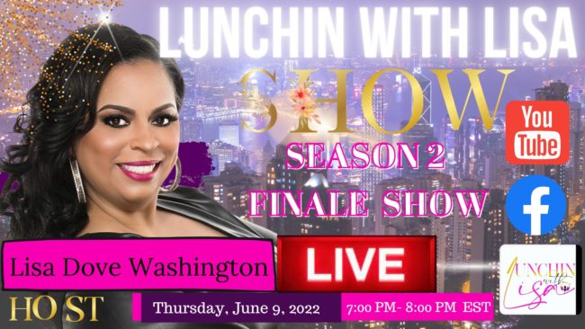 Finale Show The last Lunchin with Lisa Show of SEASON 2!!!! Please join us as we talk about all the different things we have done this year on Lunchin’ with Lisa…Fav Guests, Fav Topics and more. WE also want to hear about what topics you want to talk about in SEASON 3! POP IN &…